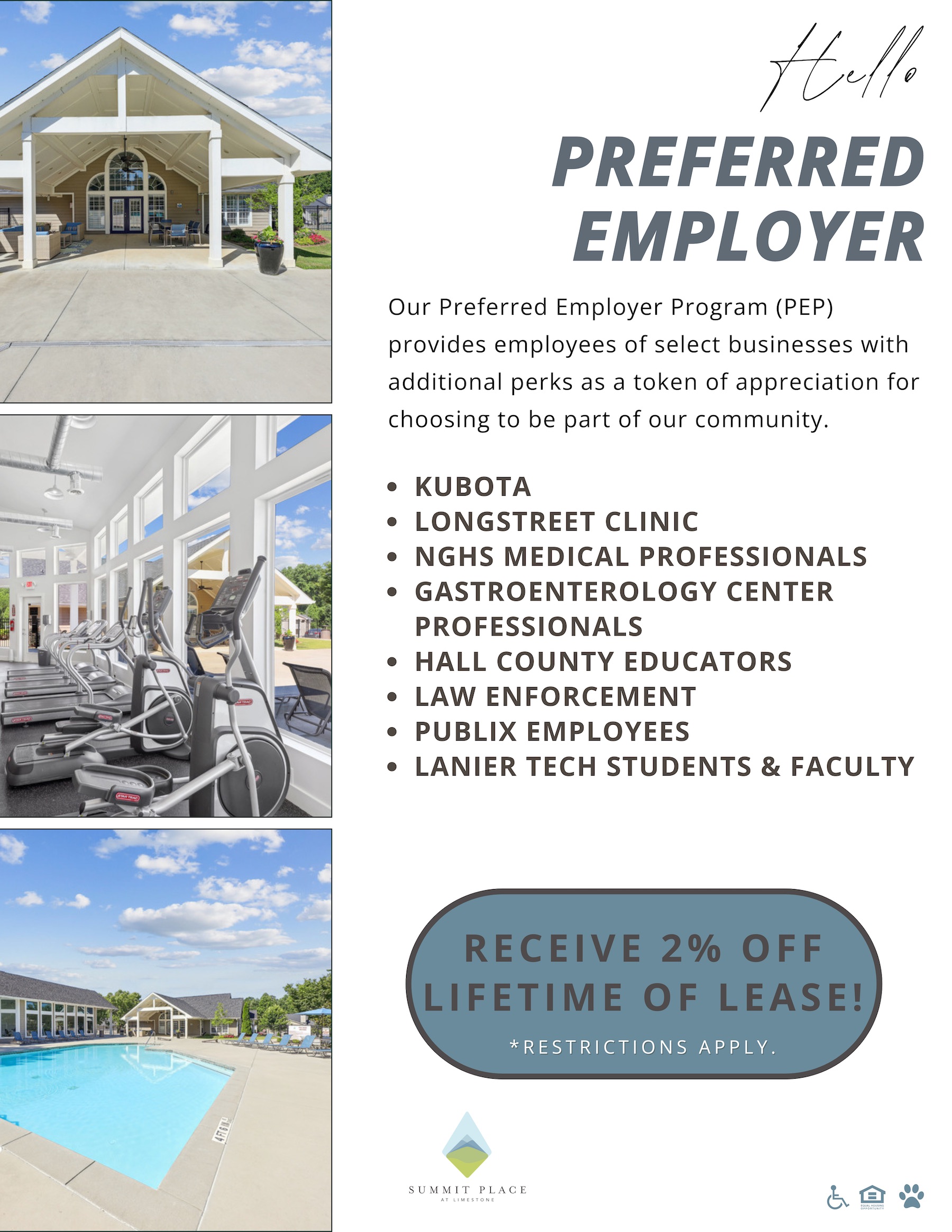 Summit Place at Limestone is not just a place to live; it's where life unfolds beautifully. Nestled in the heart of Gainesville, GA, our community offers spacious 1, 2, and 3-bedroom apartments designed with your comfort in mind. With state-of-the-art facilities and a location that keeps you connected to everything you love, you’ll find more than just a home here - you’ll find a lifestyle.